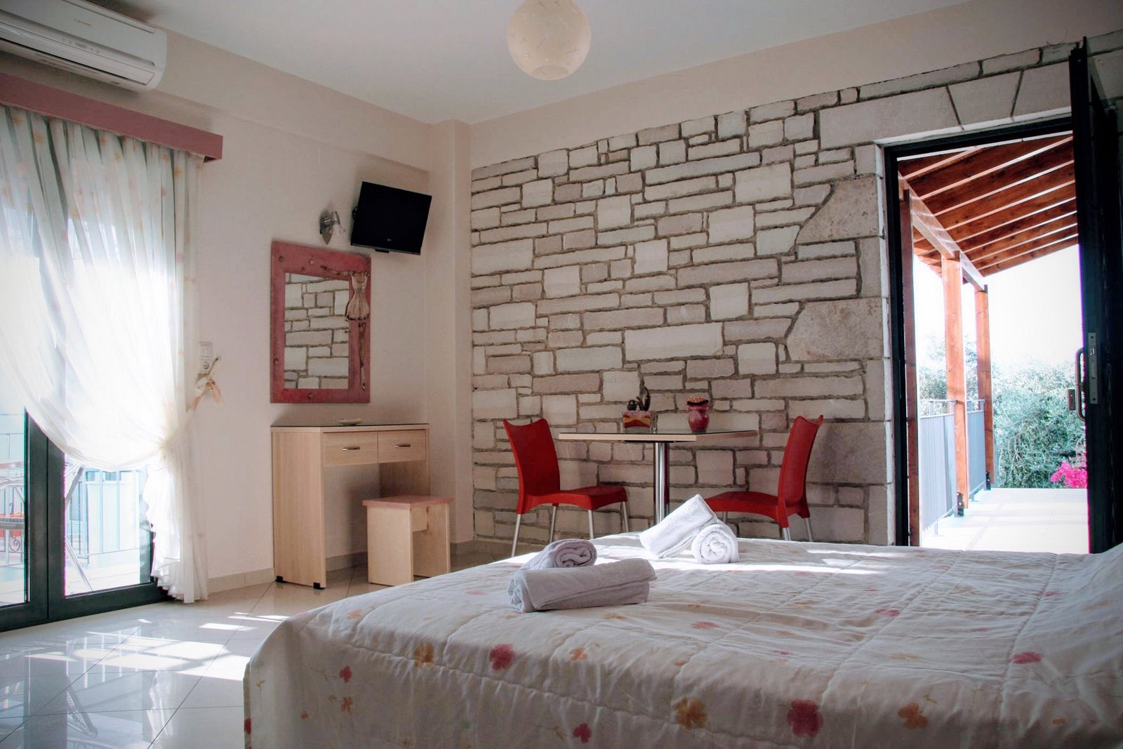 Άνετα και φωτεινά δωμάτια με μεγάλο ενιαίο χώρο που μπορεί να φιλοξενήσει από 2 - 3 άτομα. Πολύχρωμα, με καλόγουστη επίπλωση, βεράντες και εντελώς σπιτική ατμόσφαιρα, τα δωμάτια μας περιβάλλονται από καταπράσινους κήπους.